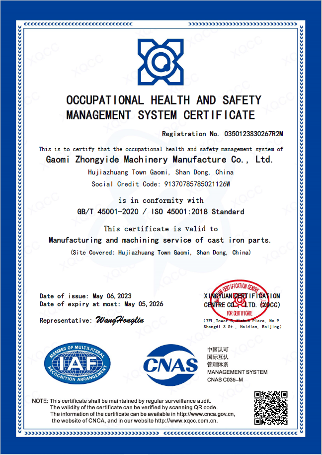 ISO45001OCCUPATIONAL HEALTH AND SAFETY MANAGEMENT SYSTEM CERTIFICATE