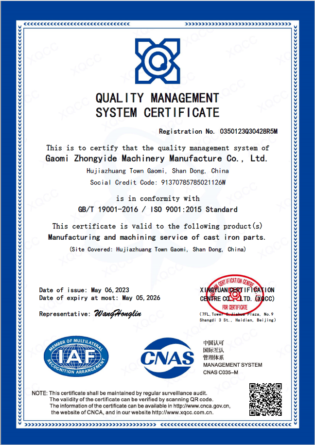 ISO9001 QUALITY MANAGEMENT SYSTEM CERTIFICATE