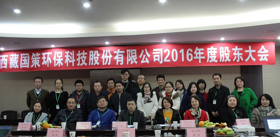 西藏國策環(huán)保科技股份有限公司2016年度股東大會于2月9日在成都召開,股東大會由董事會秘書楊偉強(qiáng)主持。董事長兼總經(jīng)理陳鴻、副董事長范津濤、副總經(jīng)理幸川、財務(wù)總監(jiān)趙永花、證券部經(jīng)理張麗、監(jiān)事會主席蘇昌軍等公司董事、監(jiān)事及核心成員出席本次會議。