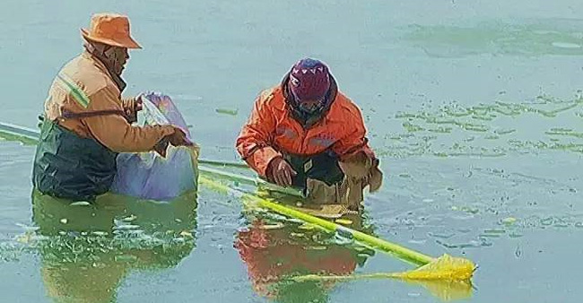 環(huán)衛(wèi)工人清理河道垃圾 還碧水予藍天