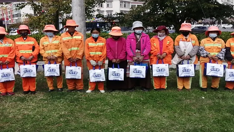 為感謝他們多年來(lái)的辛勤付出,國(guó)策環(huán)保林芝分公司相關(guān)人員向作業(yè)在一線的環(huán)衛(wèi)工人以每人80元的標(biāo)準(zhǔn),發(fā)放了當(dāng)?shù)靥禺a(chǎn)雪頓純牛奶、嘎瑪雞蛋、鹽等慰問品,共計(jì)274份。