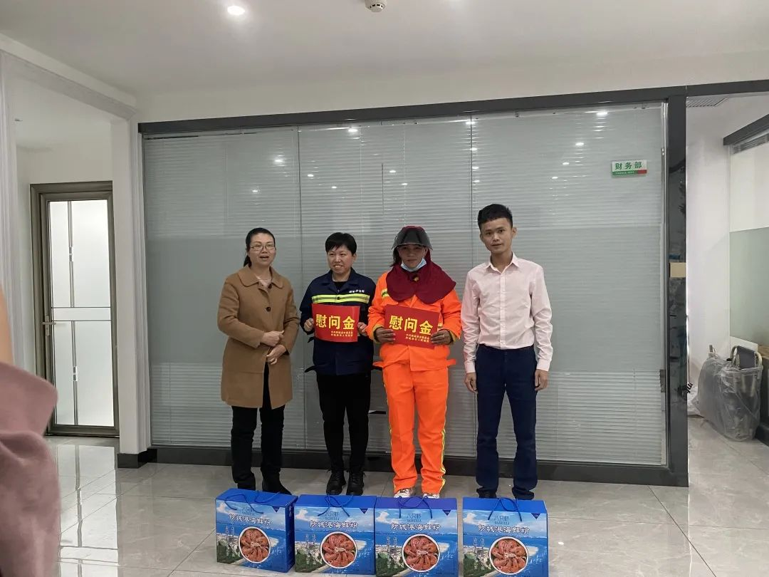 1月24日,防城港市總工會開展節(jié)前慰問活動,為國策環(huán)保防城港分公司一線環(huán)衛(wèi)人員送去了溫暖和關(guān)懷。