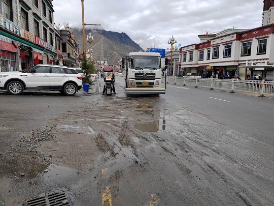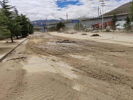 直至6月28日午時,國策環(huán)保山南分公司累計出動環(huán)衛(wèi)工人100余人次、裝載機10余車次、灑水車20余車次、路面清掃車20余車次,已清理泥土沙石總量約為20噸,市內(nèi)主要干道及泥石流發(fā)生路段已全面清理完成。